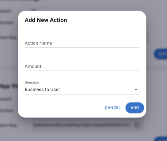 Each action needs a name, amount and a direction.