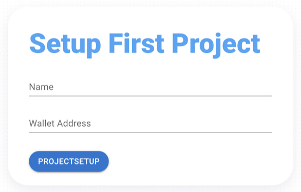 - The name and the wallet address will be editable. (But if you enter a wrong wallet address you will lose your free tokens. After clicking on the Project Setup button, you will receive some amount of free tokens in the given wallet and will be redirected to the following screen: