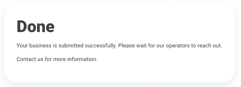 To improve the quality of our services we must verify our customers first. To begin with, you should submit your business through this link and wait for our operators to confirm your business and receive an email containing a username and password.